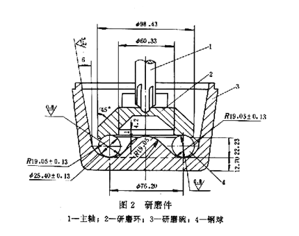 研磨碗與研磨環材質不同,并經過淬火處理,幾何形狀和尺寸如圖2所示。