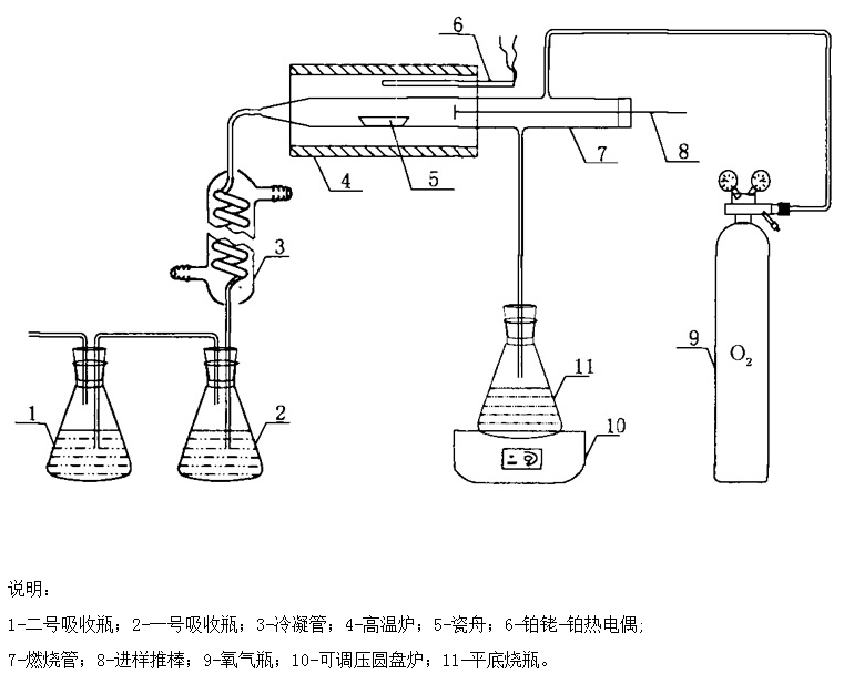 煤樣在氧氣和水蒸氣混合氣流中燃燒和水解,煤中氯全部轉化為氯化物并定量地溶于水中。以銀為指示電極,銀-氯化銀為參比電極,用標準硝酸銀電位法直接滴定冷凝液中的氯離子濃度,根據標準硝酸銀溶液是量計算煤中氯的含量。