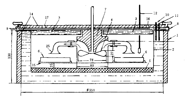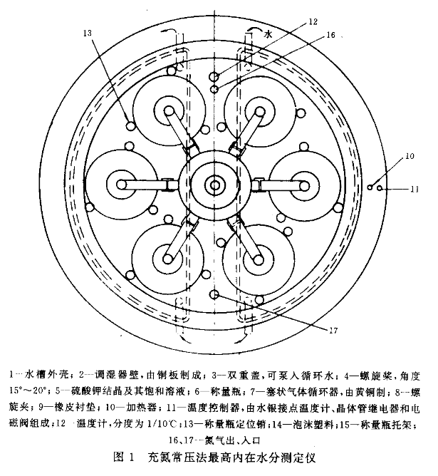 1 充氮常壓法最高內在水分測定儀(簡稱調濕器,圖1):要求溫度能保持在(30+0.1)ºC,并能連續運轉3晝夜以上。