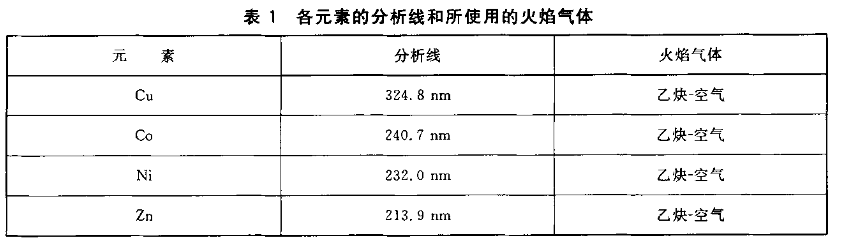 2  光源:銅、鈷、鎳、鋅元素空心陰極燈。
