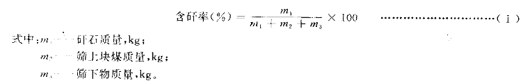 煤樣用孔徑為50mm或孔徑與產品粒級下限尺寸相同的篩子進行篩分,根據篩上物中矸石質量或篩下物質量,求出煤的含矸率或限下率。